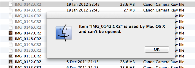Sometimes the Mac Finder can get its knickers in a twist about files that you ought to be able to open just fine but Finder says no. You may see a message that says “Item XYZ is used by Mac OS X and can’t be opened.”